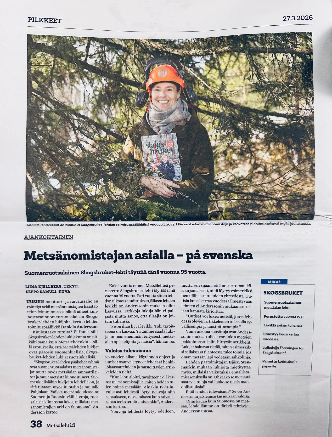 Vårt jubilerande magasin Skogsbruket har uppmärksammats i senaste nummer av Metsälehti!